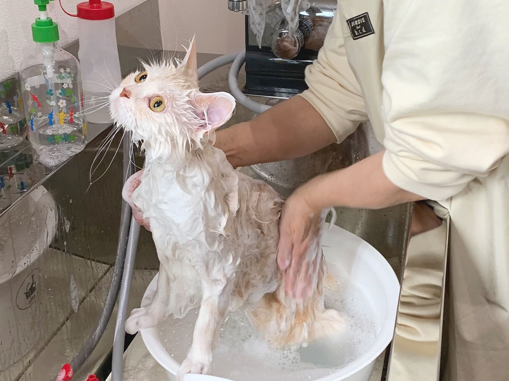 また、普段清潔にお手入れしているネコちゃんでも、今後皮膚病やフケが多くなることを見越して年に1回のシャンプーを推奨しています。