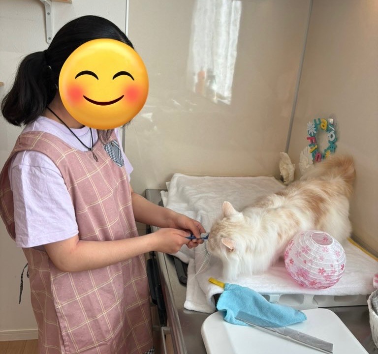 猫が大好きな中学生さん。お母様といっしよに、シャンプーの見学にいらしてくださいました。