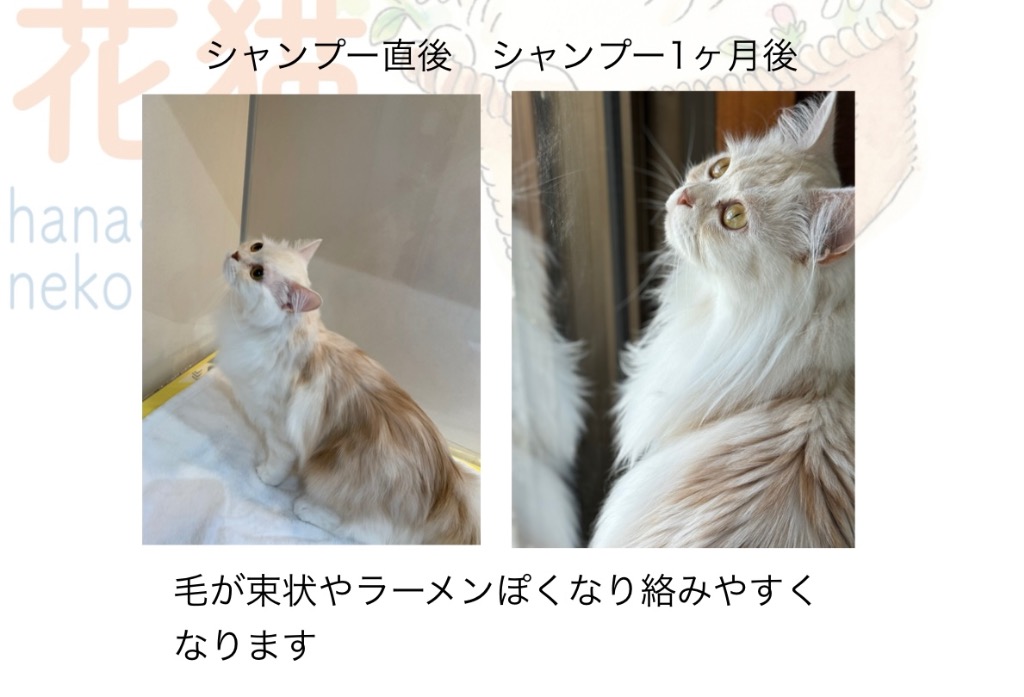 長毛でオイリーで絡みやすい猫ちゃんの場合、毎月シャンプーしてます。