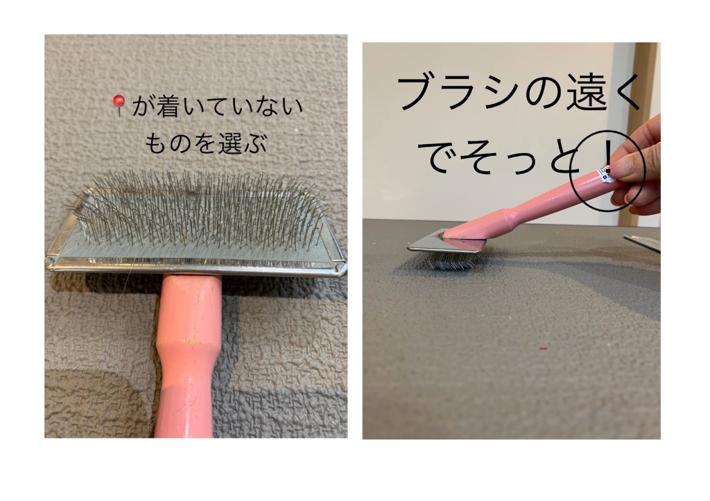 スリッカーは、人間からみたから、針が尖ってていたそうに見えます。ですが、長毛猫ちゃんの毛にとって、丸いピンが着いていとかえってひっかかり痛いのです。ピンのない柔らかいものを選びましょう。